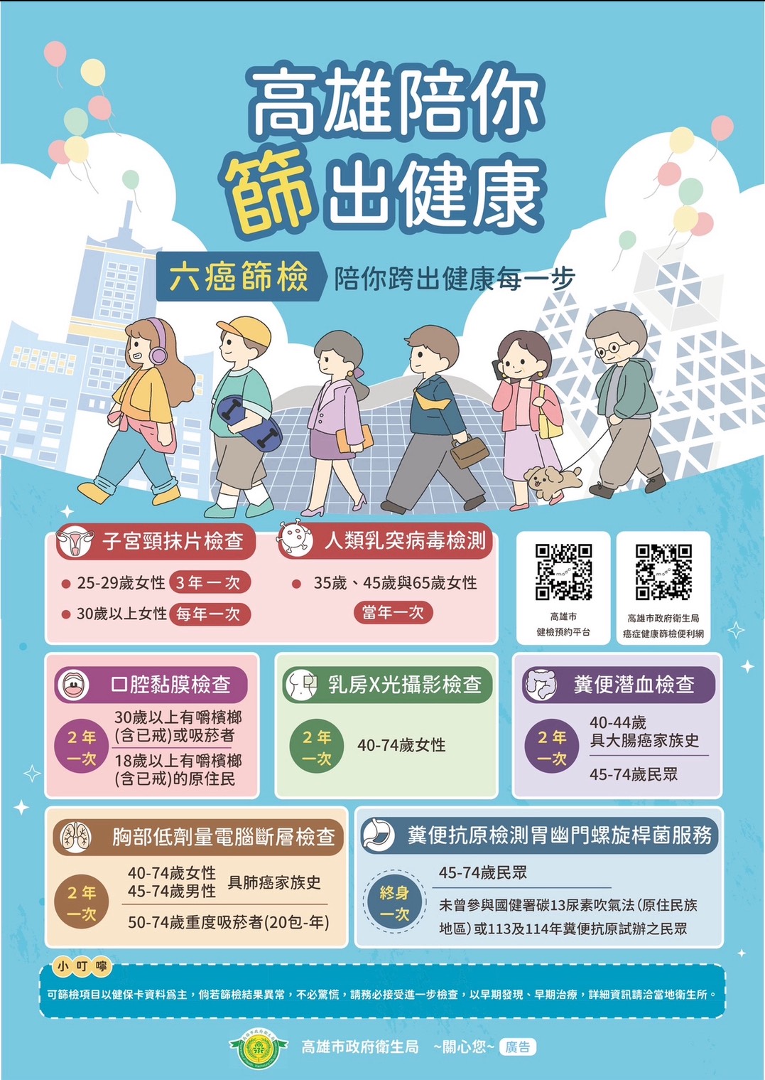 癌症篩檢對象一覽表,各項篩檢補助對象如下: