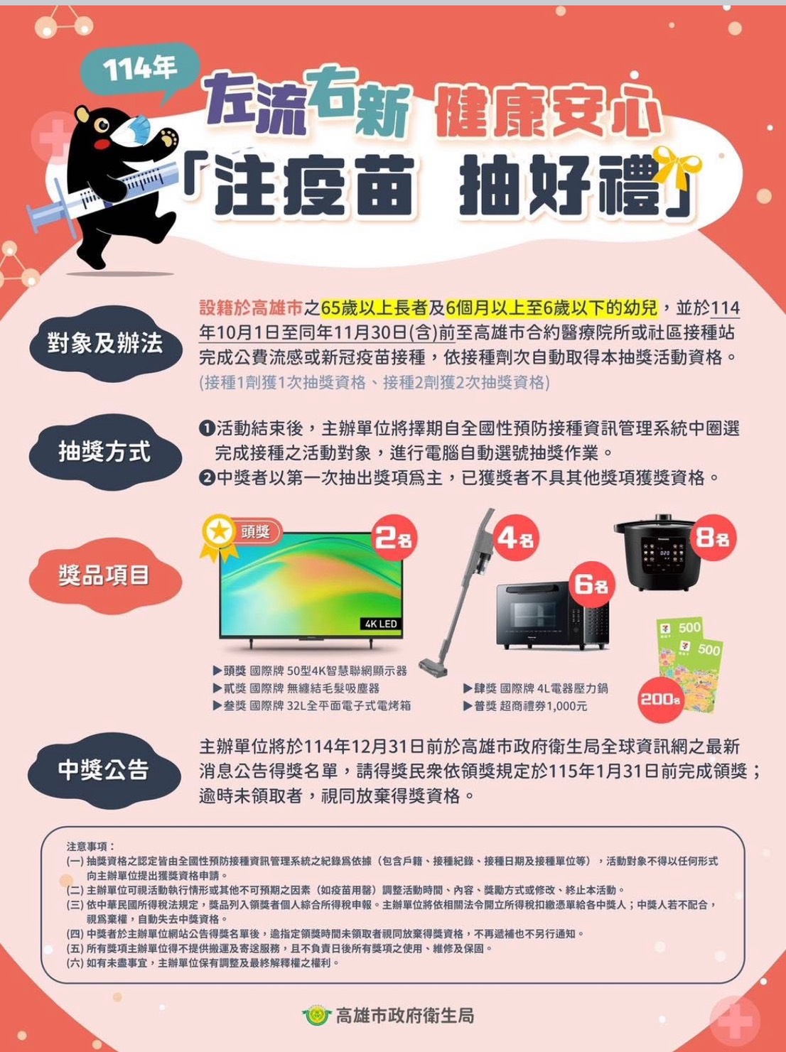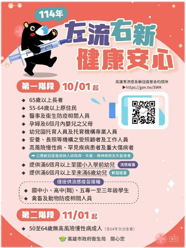 好消息來囉!「左流右新,健康安心」114年公費流感/新冠疫苗於10月1日同步開打!